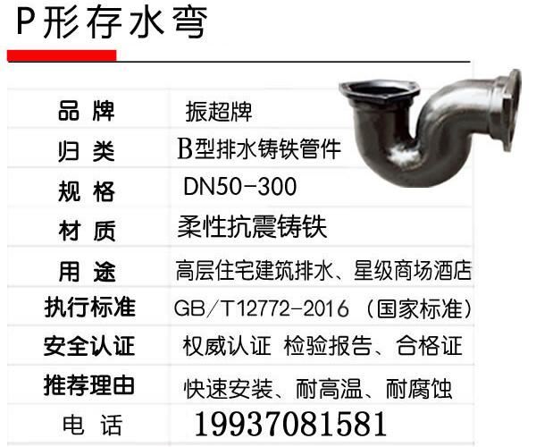 廠家直銷B型柔性鑄鐵排水管件P形存水彎頭