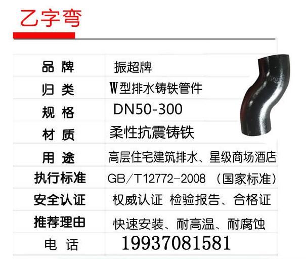 振超牌W型鑄鐵排水管件,柔性抗震鑄鐵,快速安裝,耐高溫,耐腐蝕;用于高層住宅建筑排水、星際商場(chǎng)酒店。