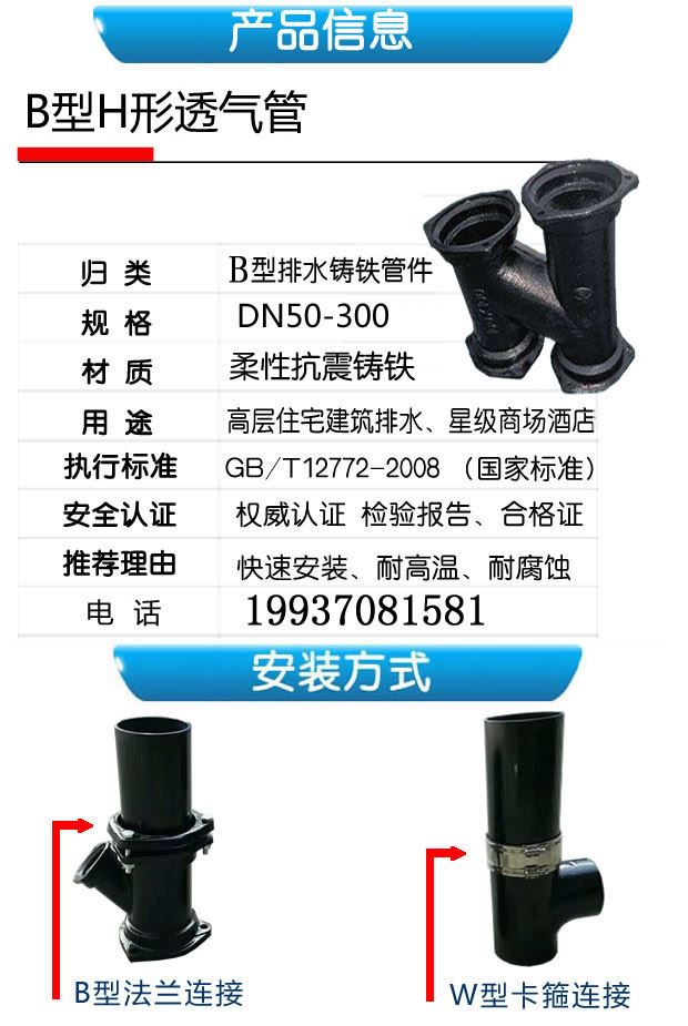 離心機(jī)制抗震柔性鑄鐵排水管件B型H形透氣管,柔性抗震鑄鐵,快速安裝,耐高溫,耐腐蝕;用于高層住宅建筑排水、星際商場酒店。