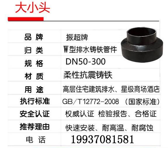振超牌W型鑄鐵排水管件,柔性抗震鑄鐵,快速安裝,耐高溫,耐腐蝕;用于高層住宅建筑排水、星際商場(chǎng)酒店。