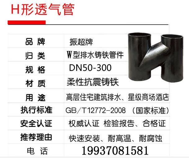 振超牌W型鑄鐵排水管件,柔性抗震鑄鐵,快速安裝,耐高溫,耐腐蝕;用于高層住宅建筑排水、星際商場(chǎng)酒店。