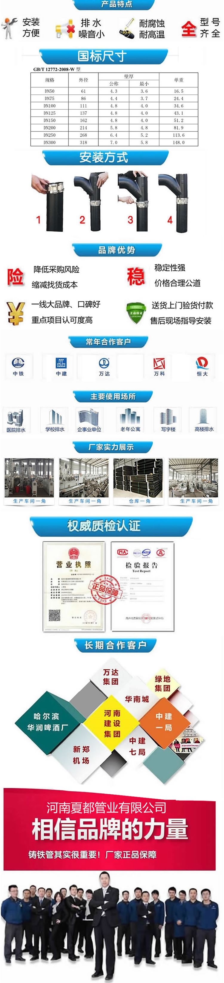 河南柔性鑄鐵排水管優(yōu)勢用途及常見分類和安裝方式