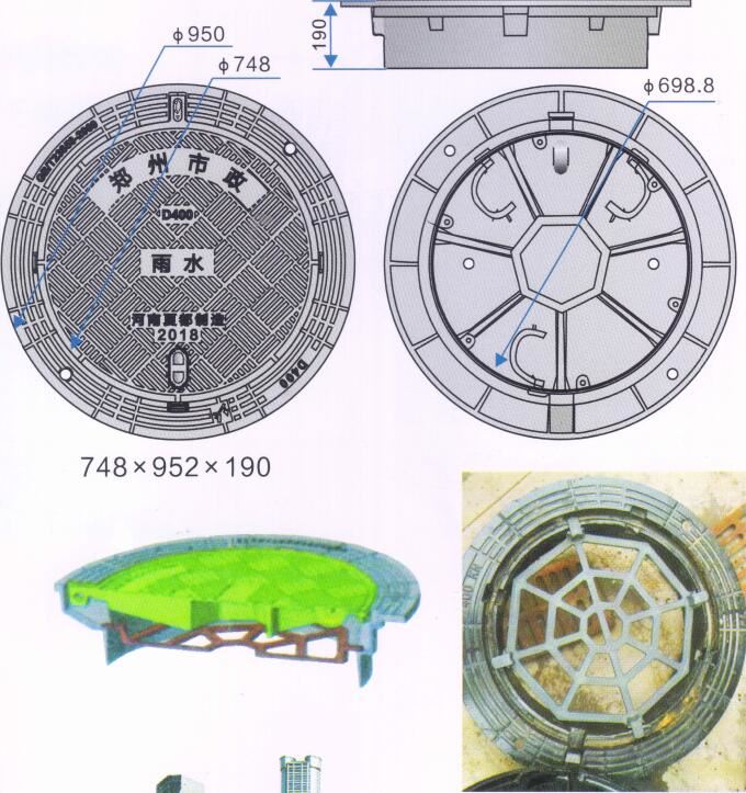 井蓋直接伸入井孔中,可解決井蓋在車輛輾軋下發(fā)生推移的問題。同時,該井蓋中間加裝了膠條,可起到防震的作用。井蓋上分別安裝了三個防盜鎖,車輛輾軋不會使井蓋翹起,不易被盜。